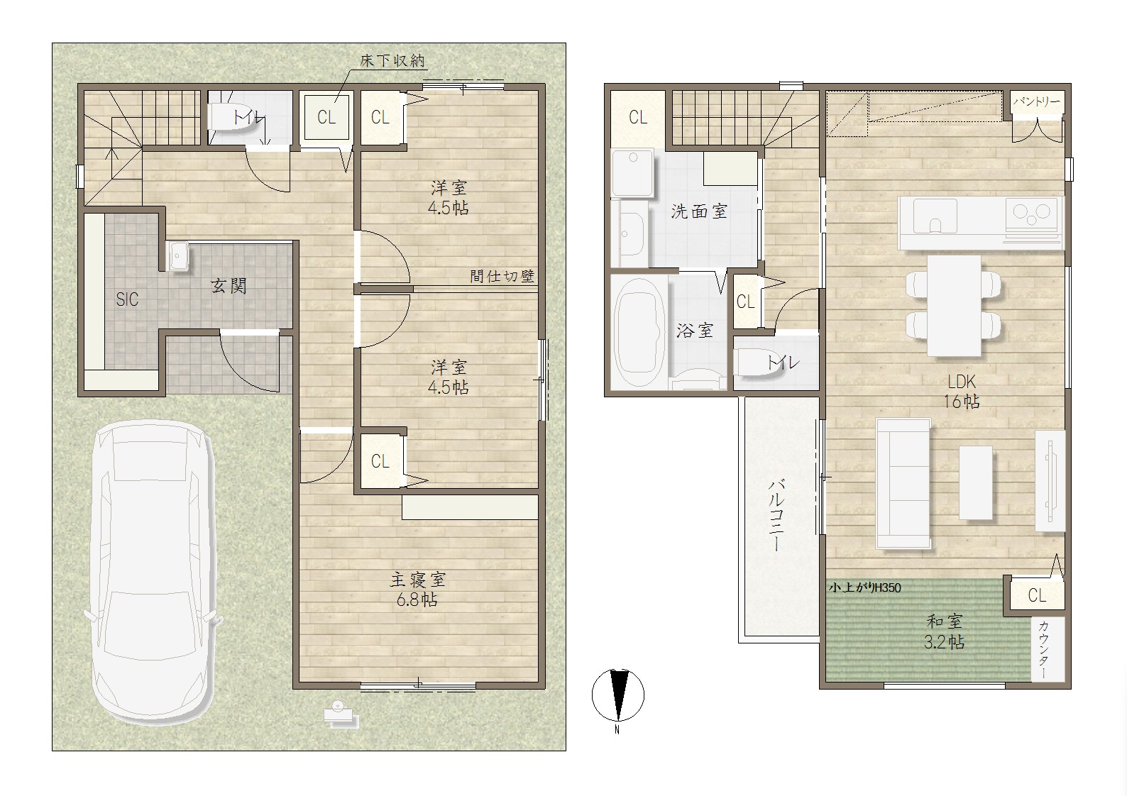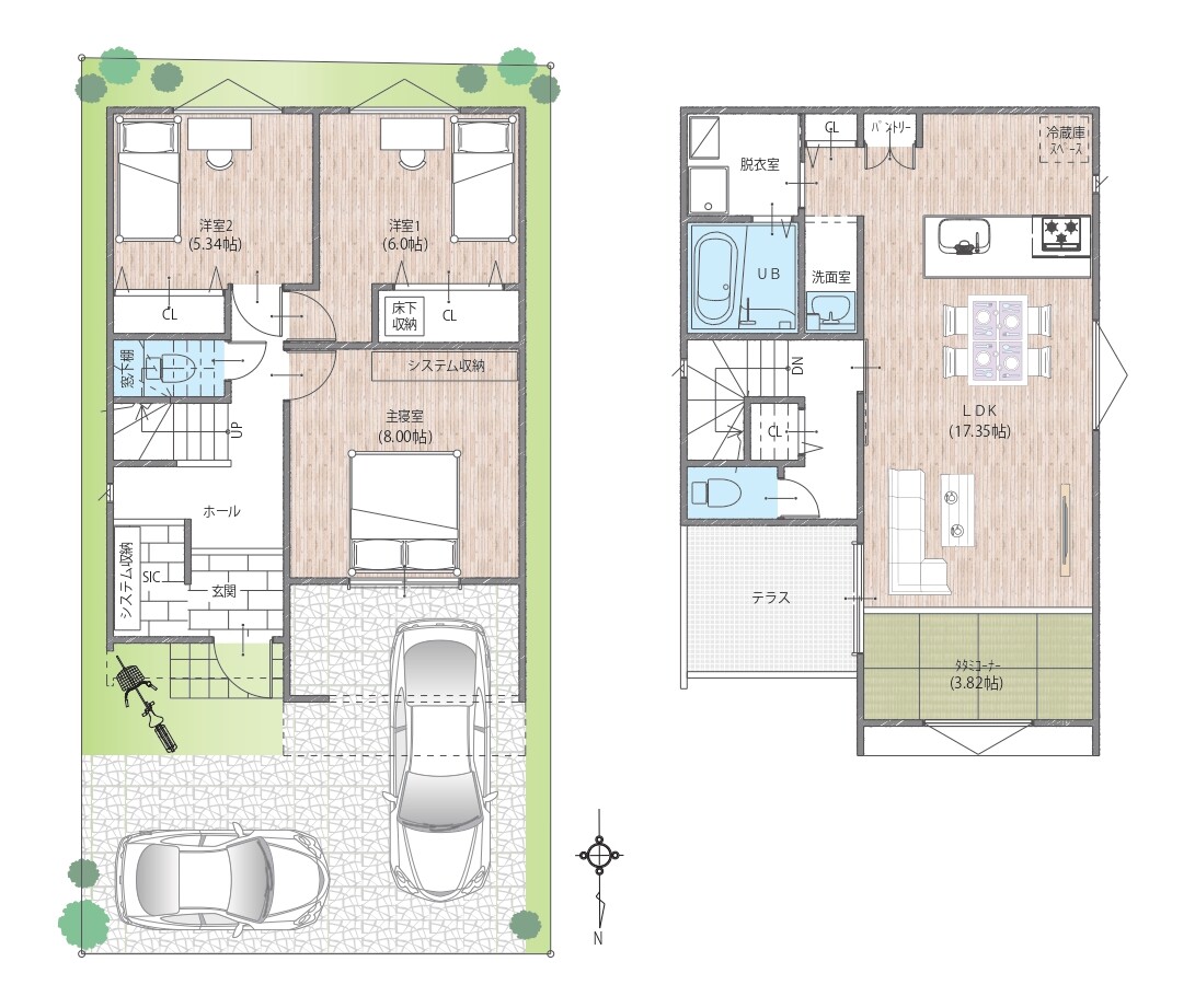 土地面積:80.00㎡(24.20坪)~105.87㎡(32.02坪)